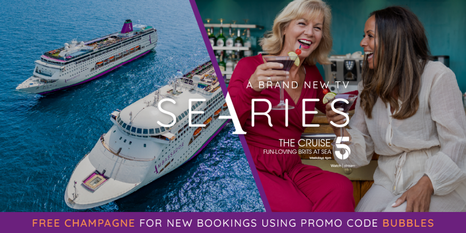 To celebrate the launch of the new TV show The Cruise: Fun-Loving Brits at Sea, featuring Ambassador Cruise Line, they are giving away a FREE bottle of champagne for every cabin booked. Quote code 'Bubbles' when booking.