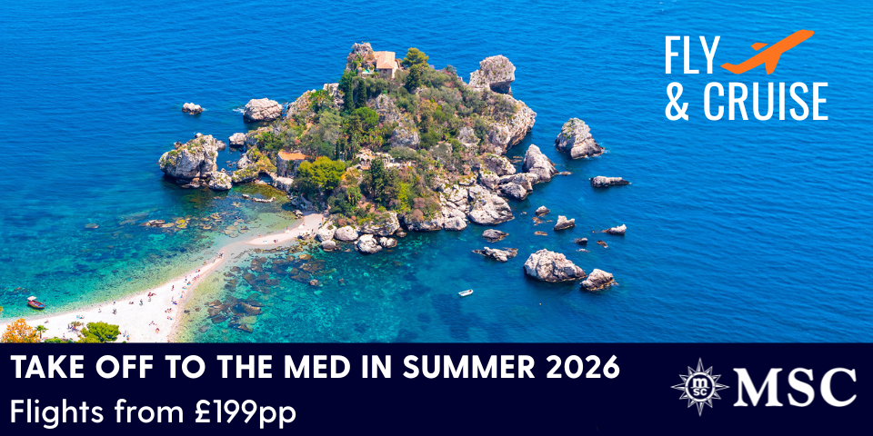 Head to the Med in summer 2026 from just £199pp, when you book one of MSC Cruises' fantastic fly-cruise packages. With flights from London, Manchester, Edinburgh, Belfast or Dublin, your next escape is closer than you think. Transfers are also included, so all that's left is to make sure you've packed your passport!